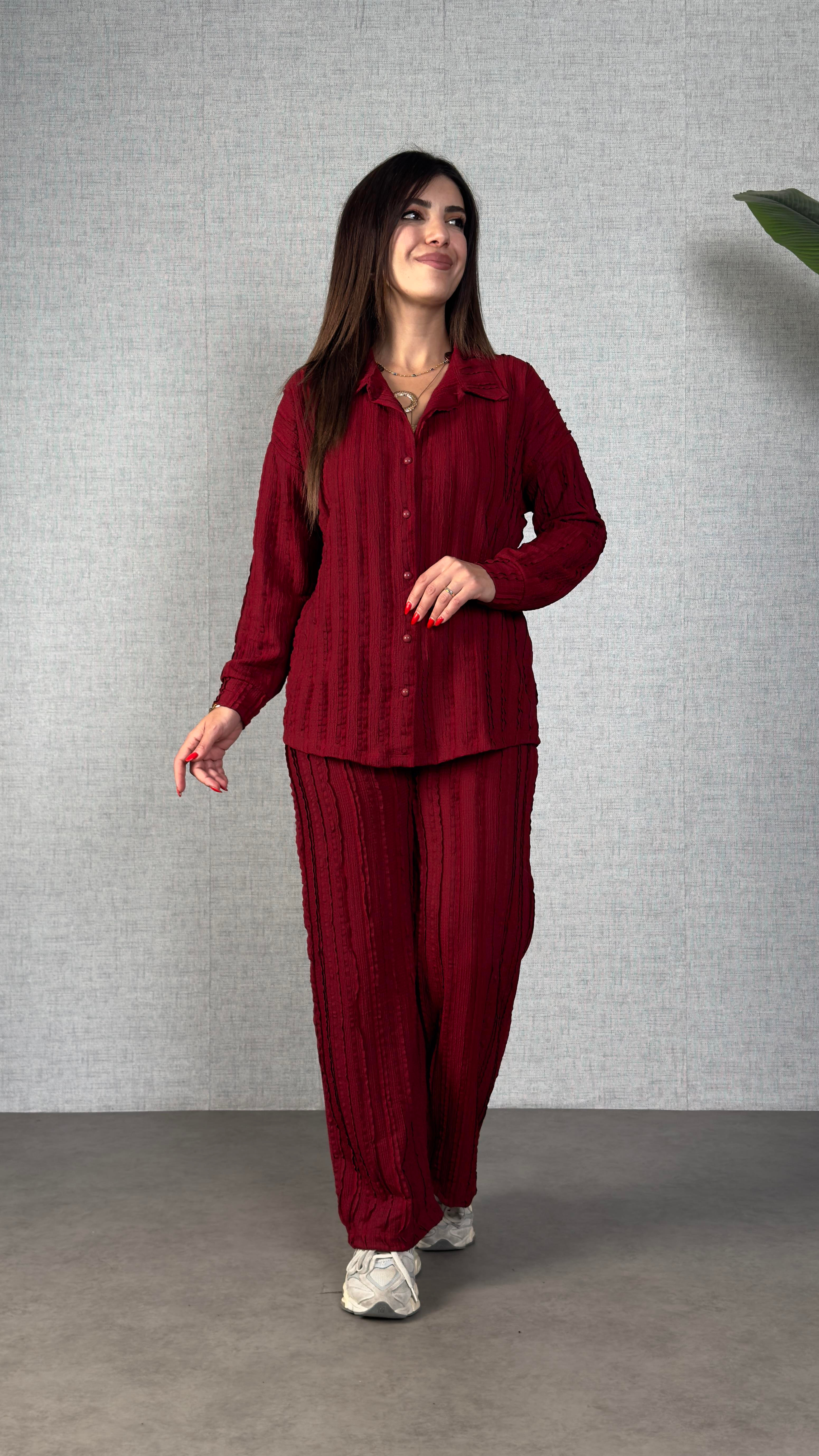 Amenica Bordo Fırfır Kumaş İkili Takım