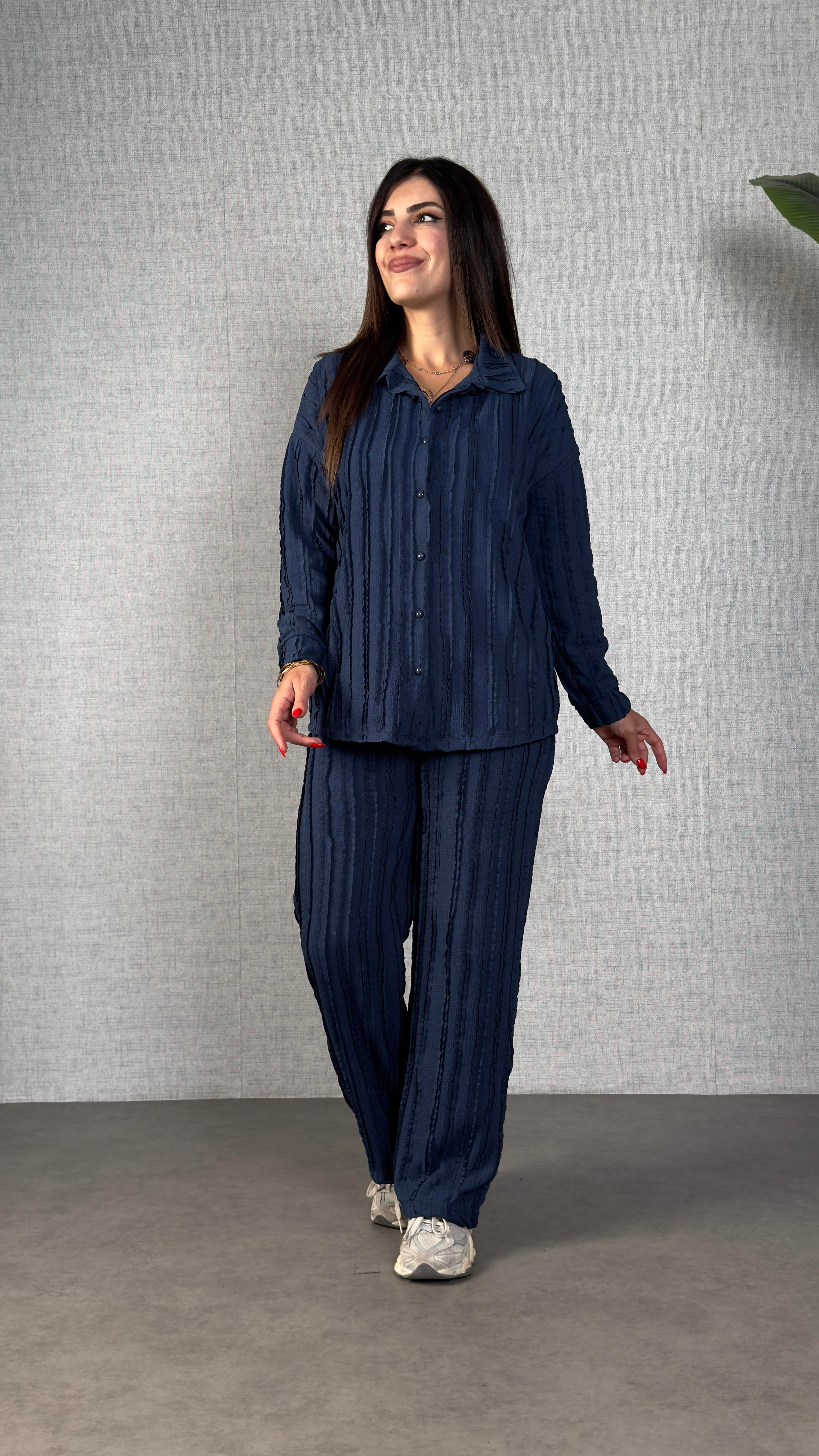 Amenica Lacivert Fırfır Kumaş İkili Takım