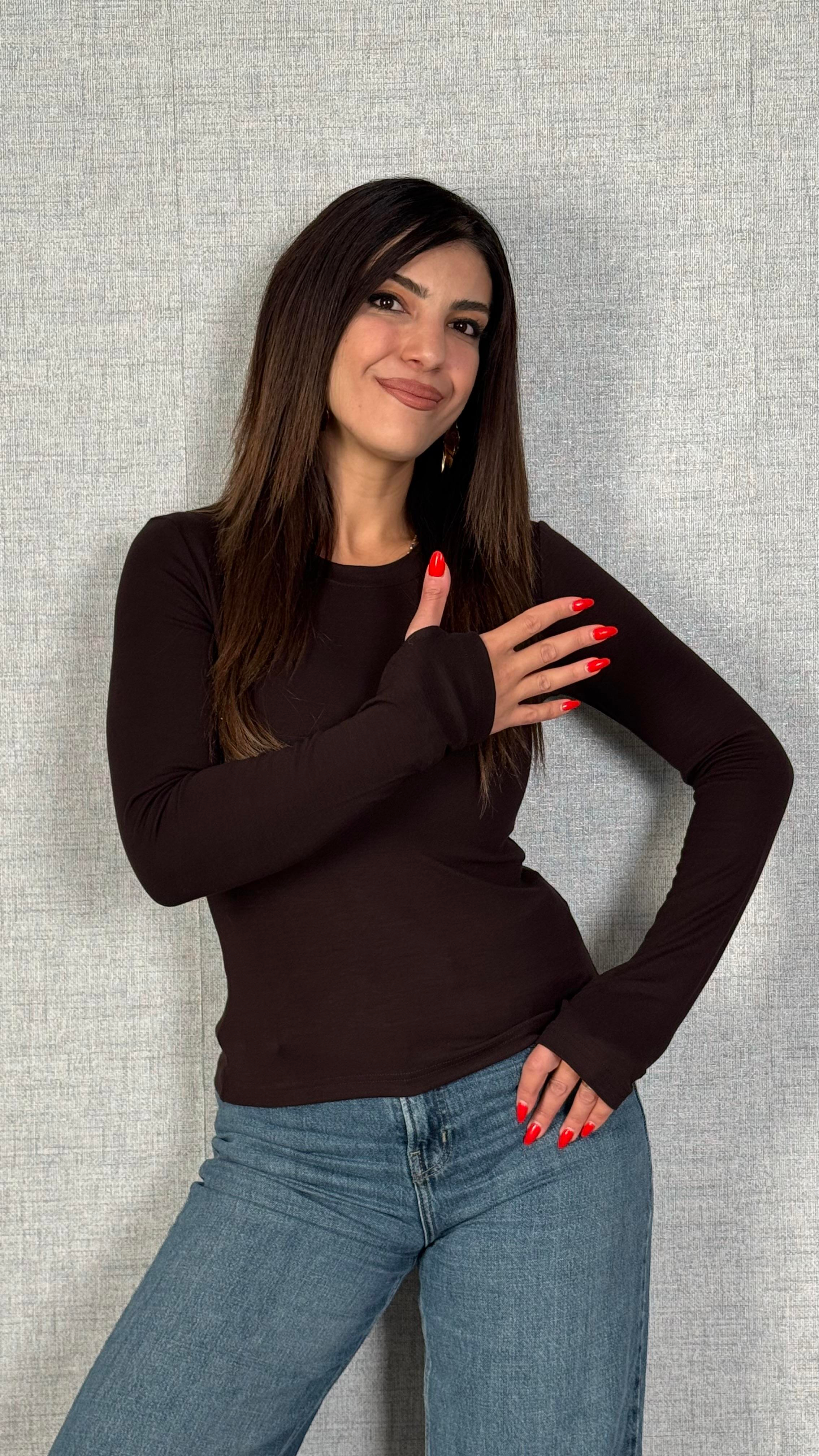 Beliza Kahverengi Parmak Geçirmeli Bluz