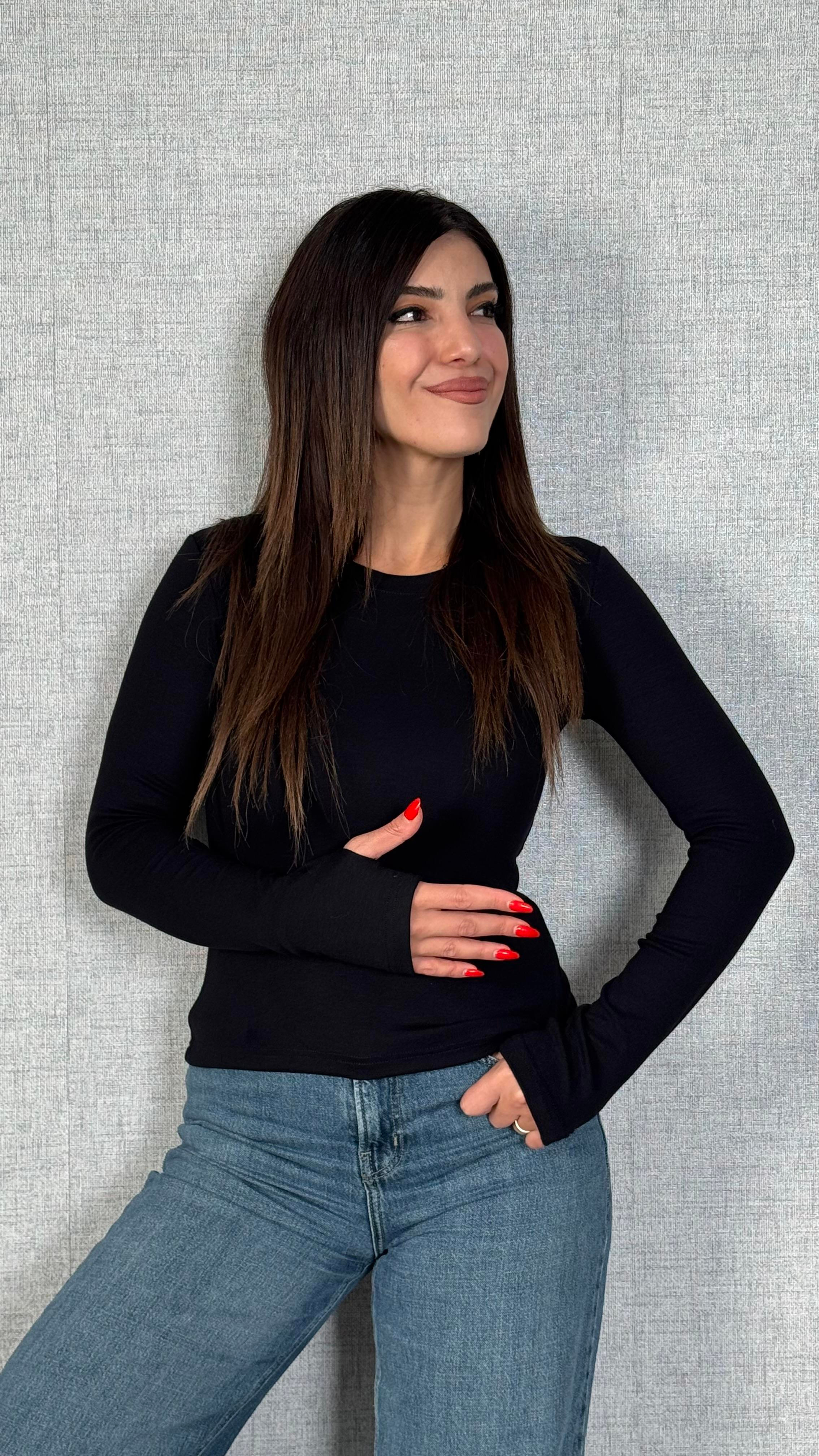 Beliza Siyah Parmak Geçirmeli Bluz