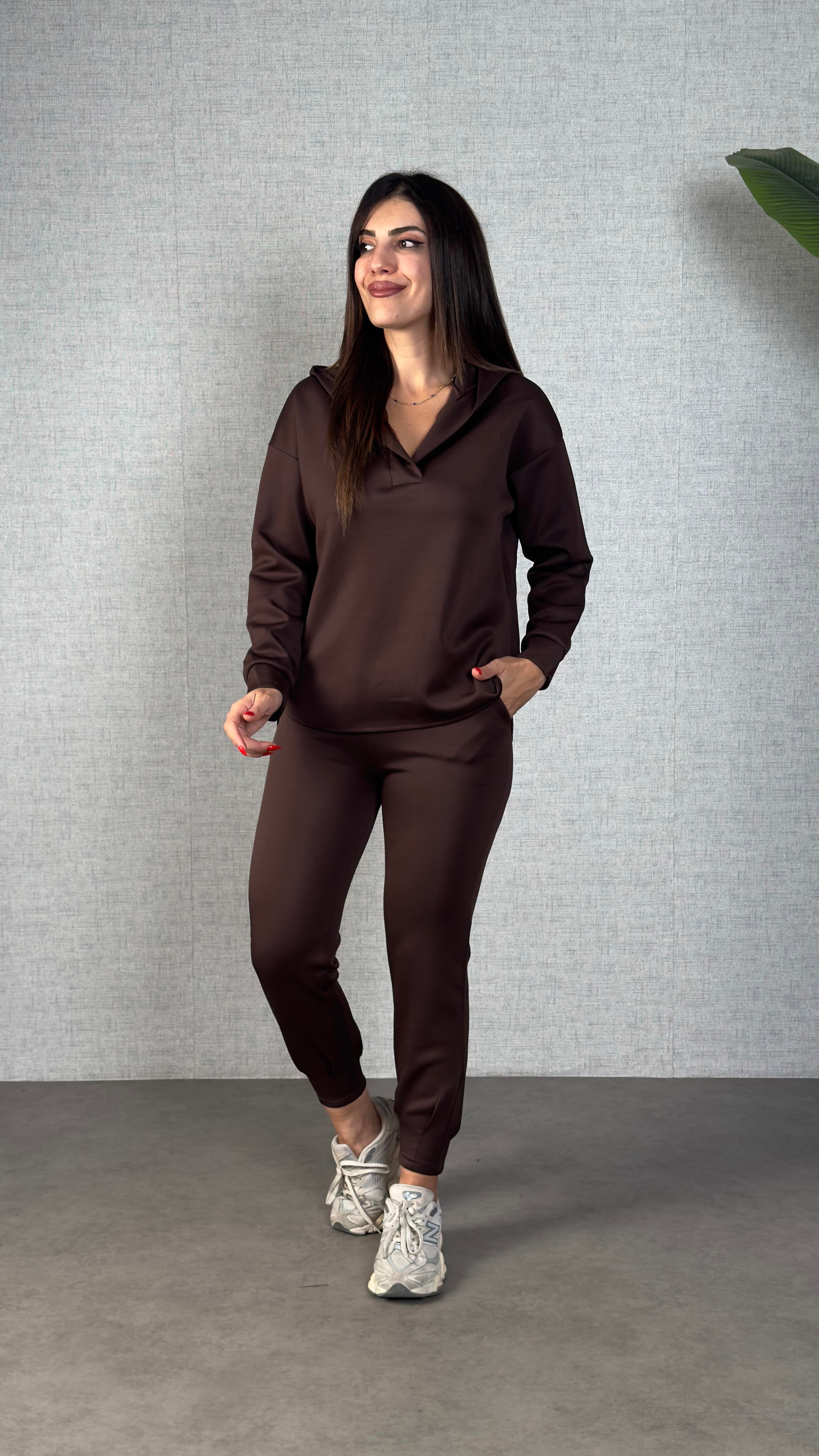 Disson Kahverengi Scuba Kapüşonlu İkili Takım