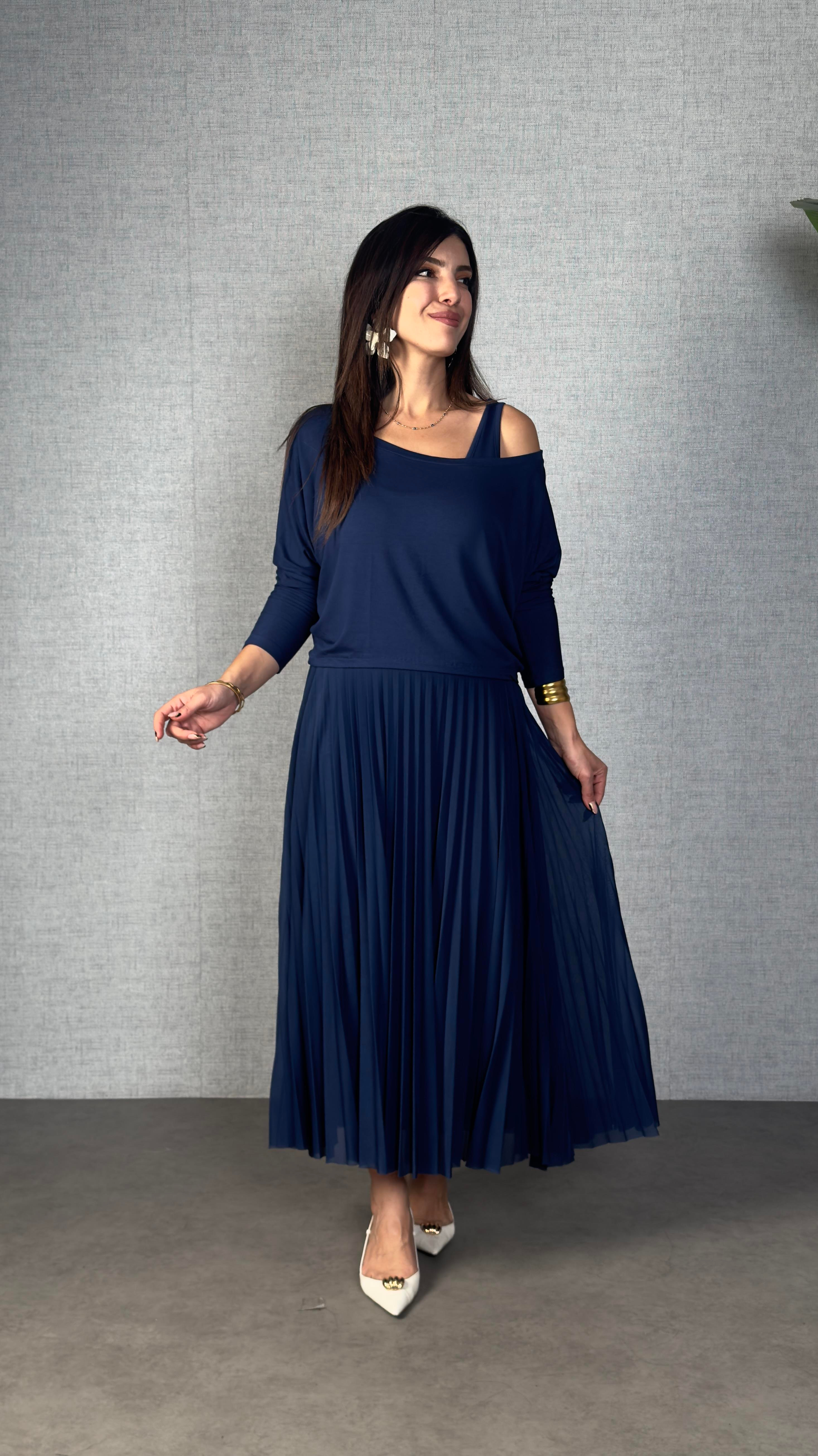 Enya Mavi Piliseli İkili Elbise