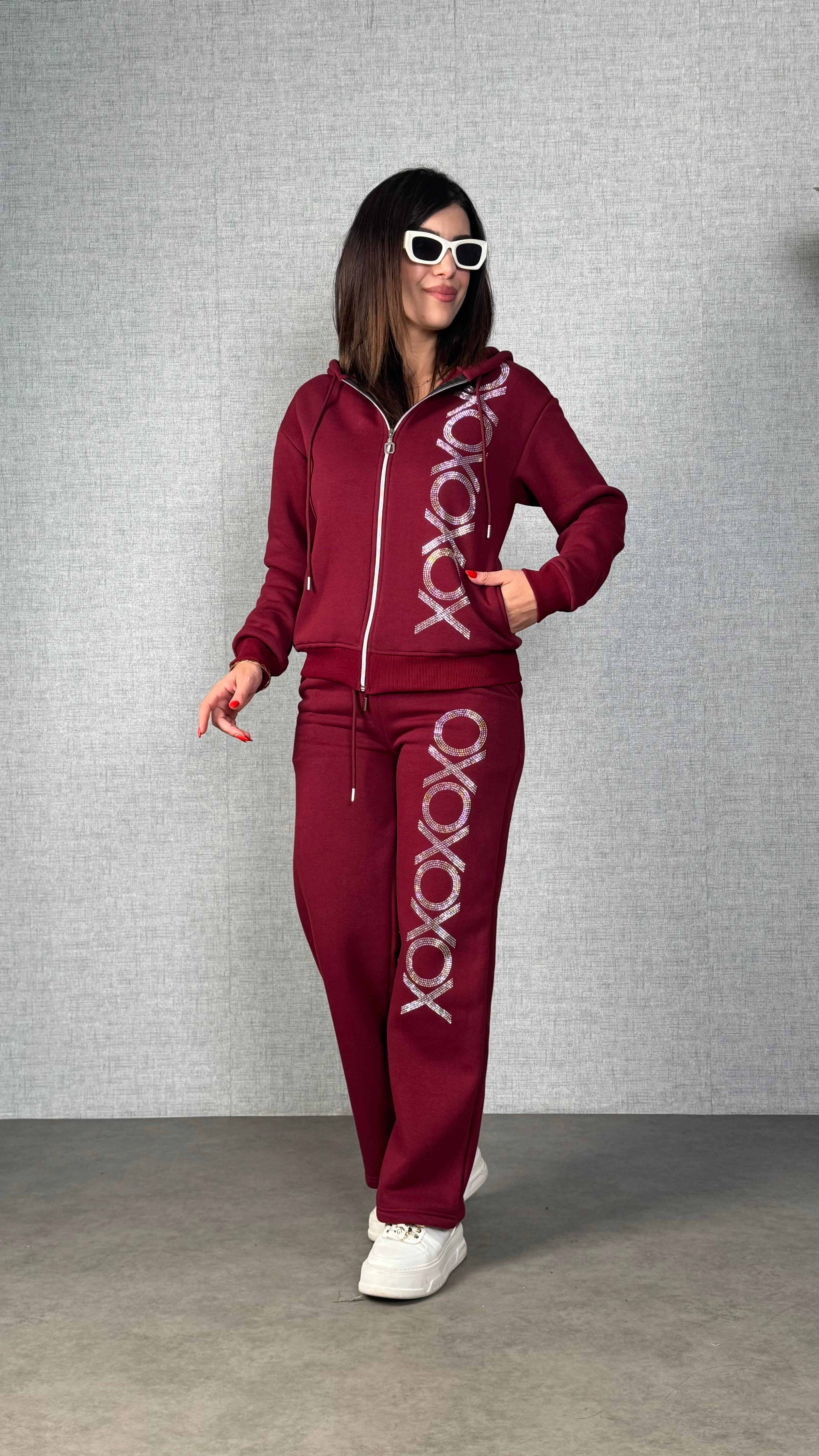 Esse Bordo Taşlı Üç İplik İkili Takım