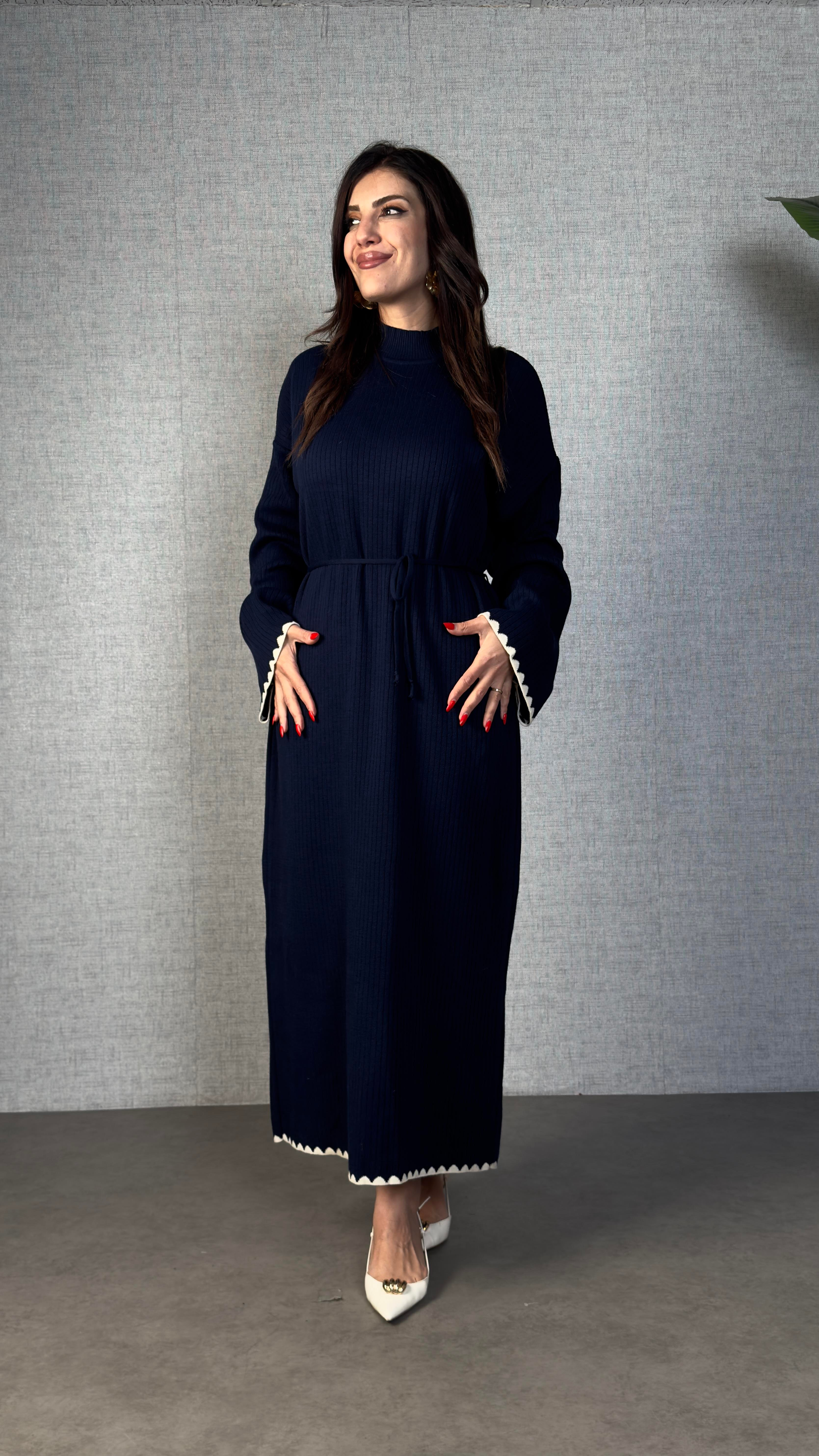 İmpery Lacivert Belden Bağlamalı Triko Elbise