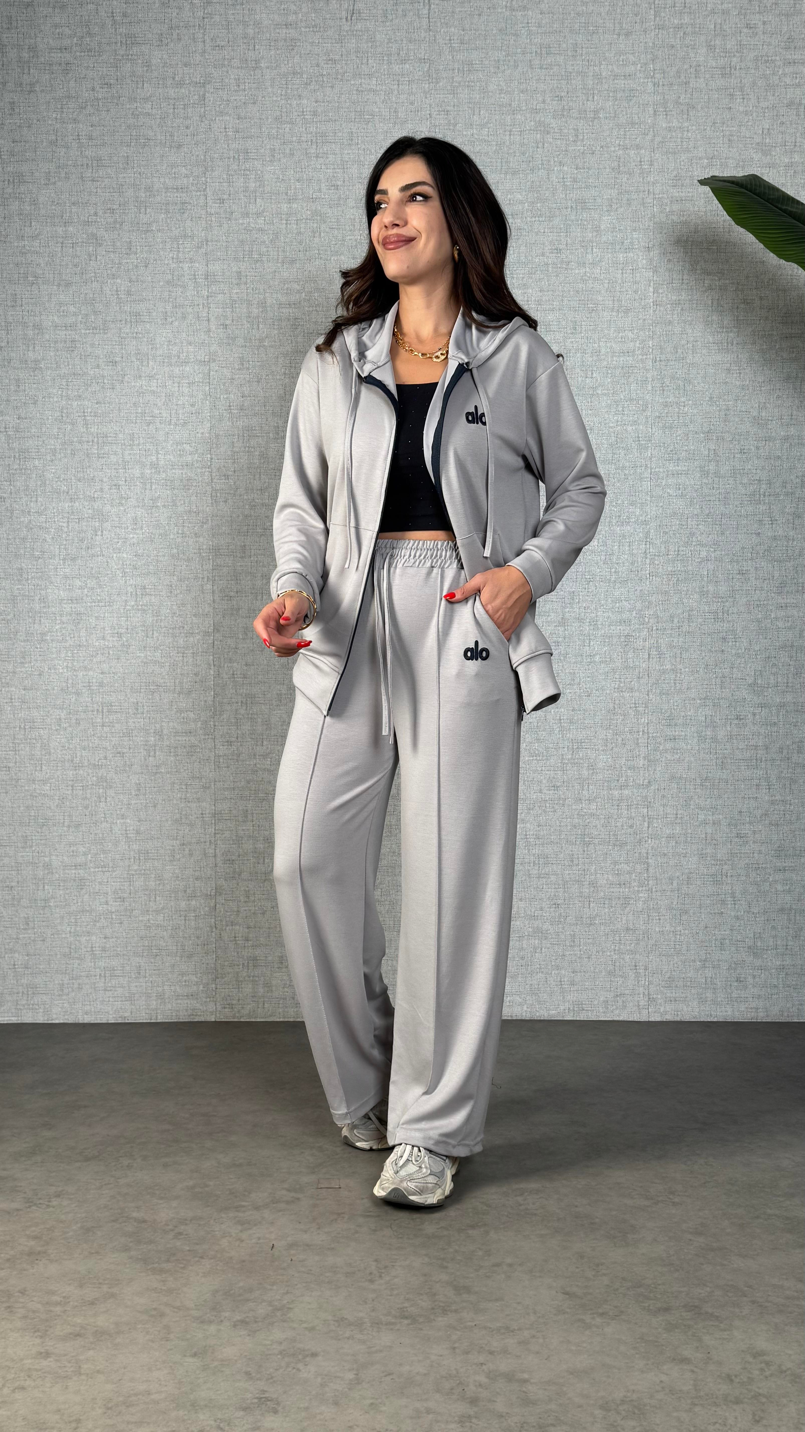 Judi Gri Kapüşonlu Fermuarlı İkili Takım