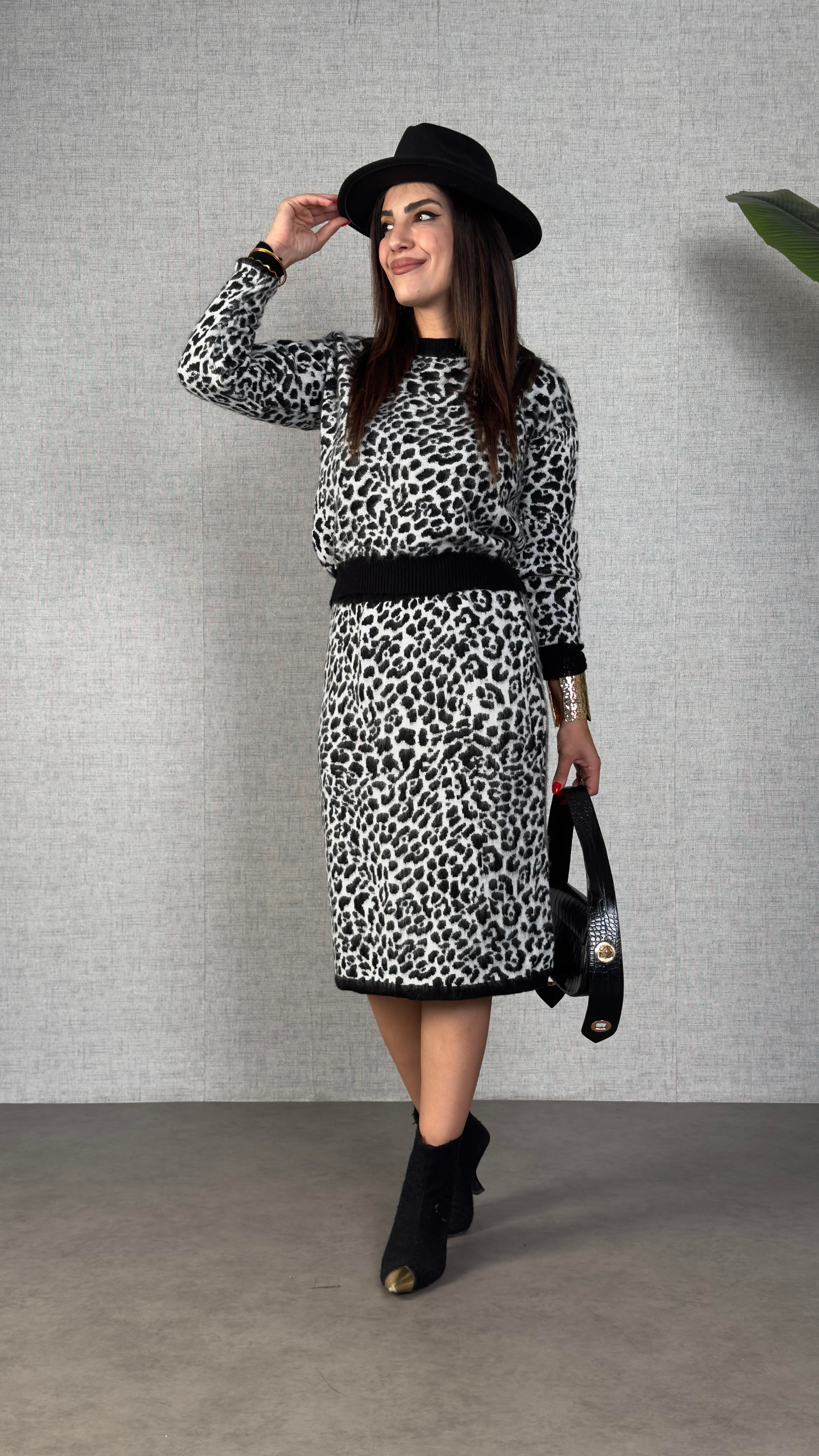 Lasse Kahverengi Leopar Etekli İkili Takım Lasse Siyah Leopar Etekli İkili Takım