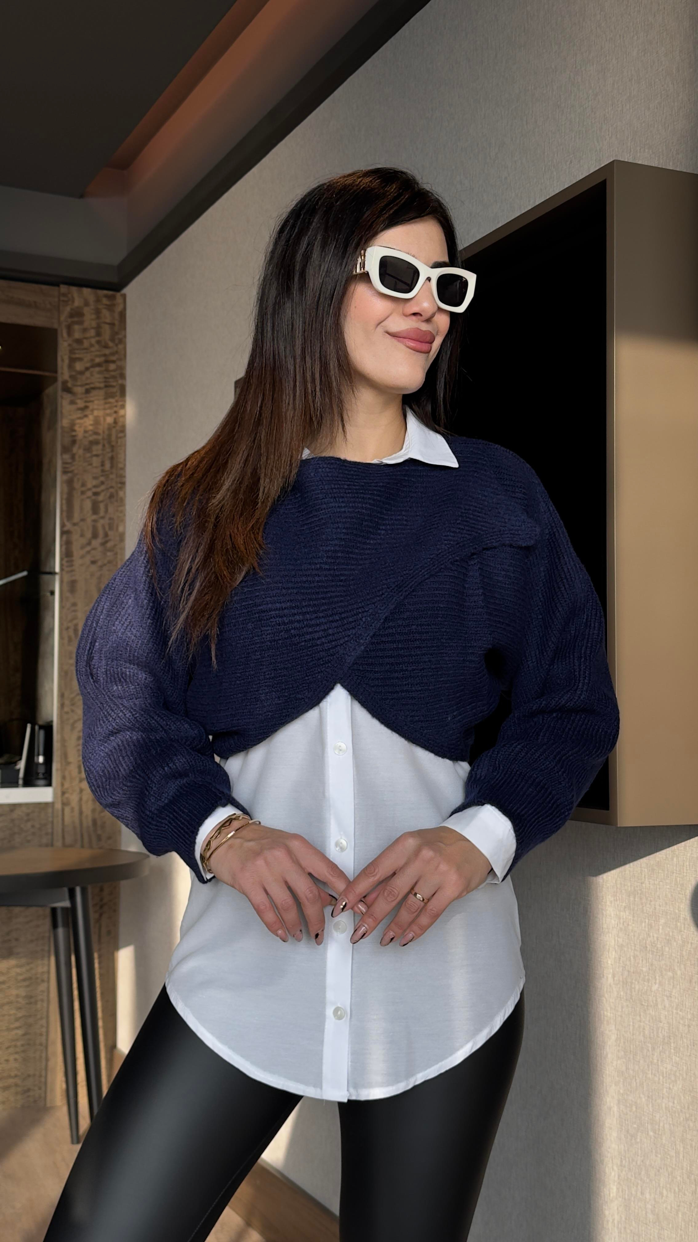 Lida Lacivert Triko Gömlek İkili Takım Lida Bordo Triko Gömlek İkili Takım