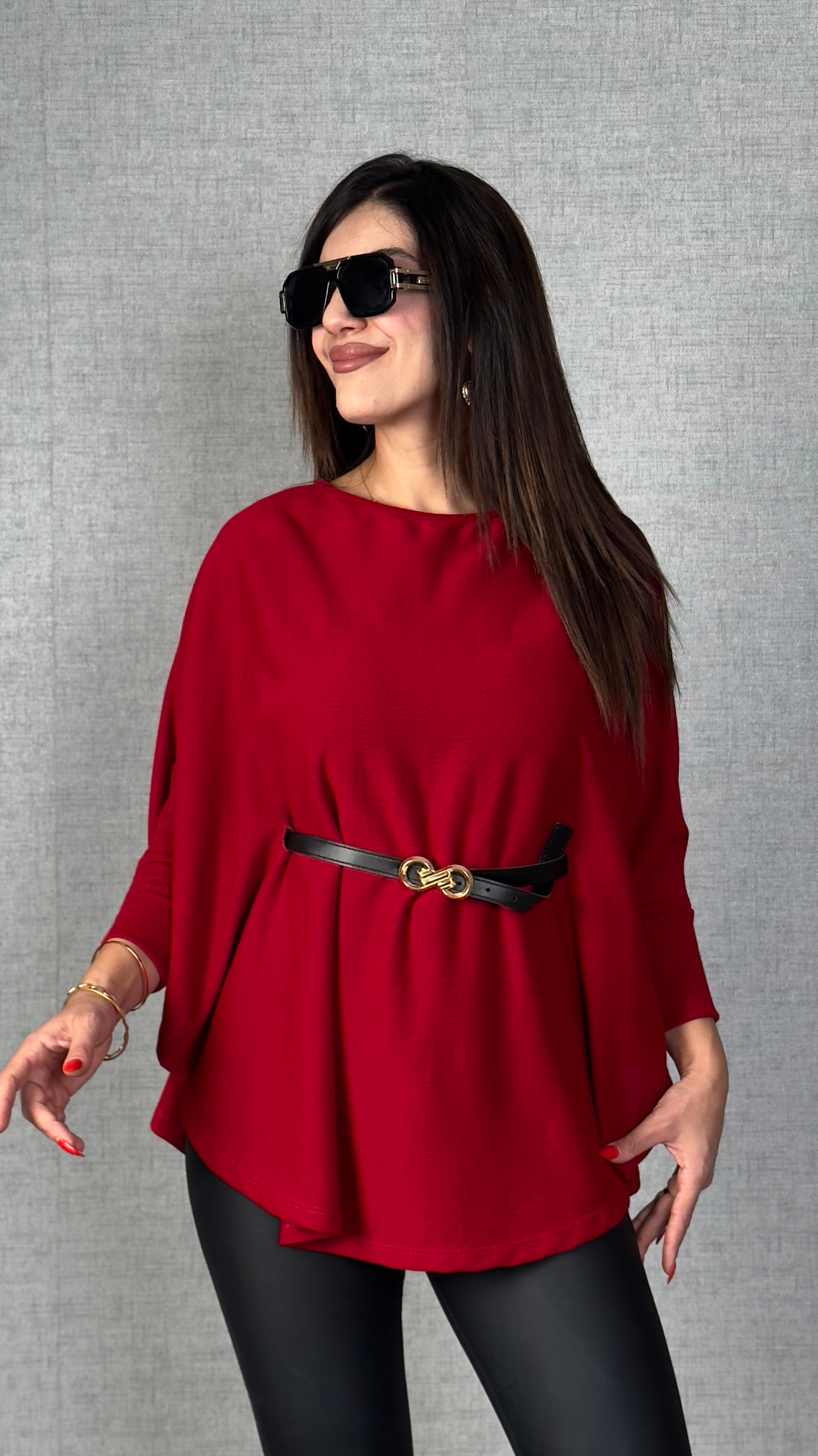 Milana Kırmızı Kemerli Triko Panço