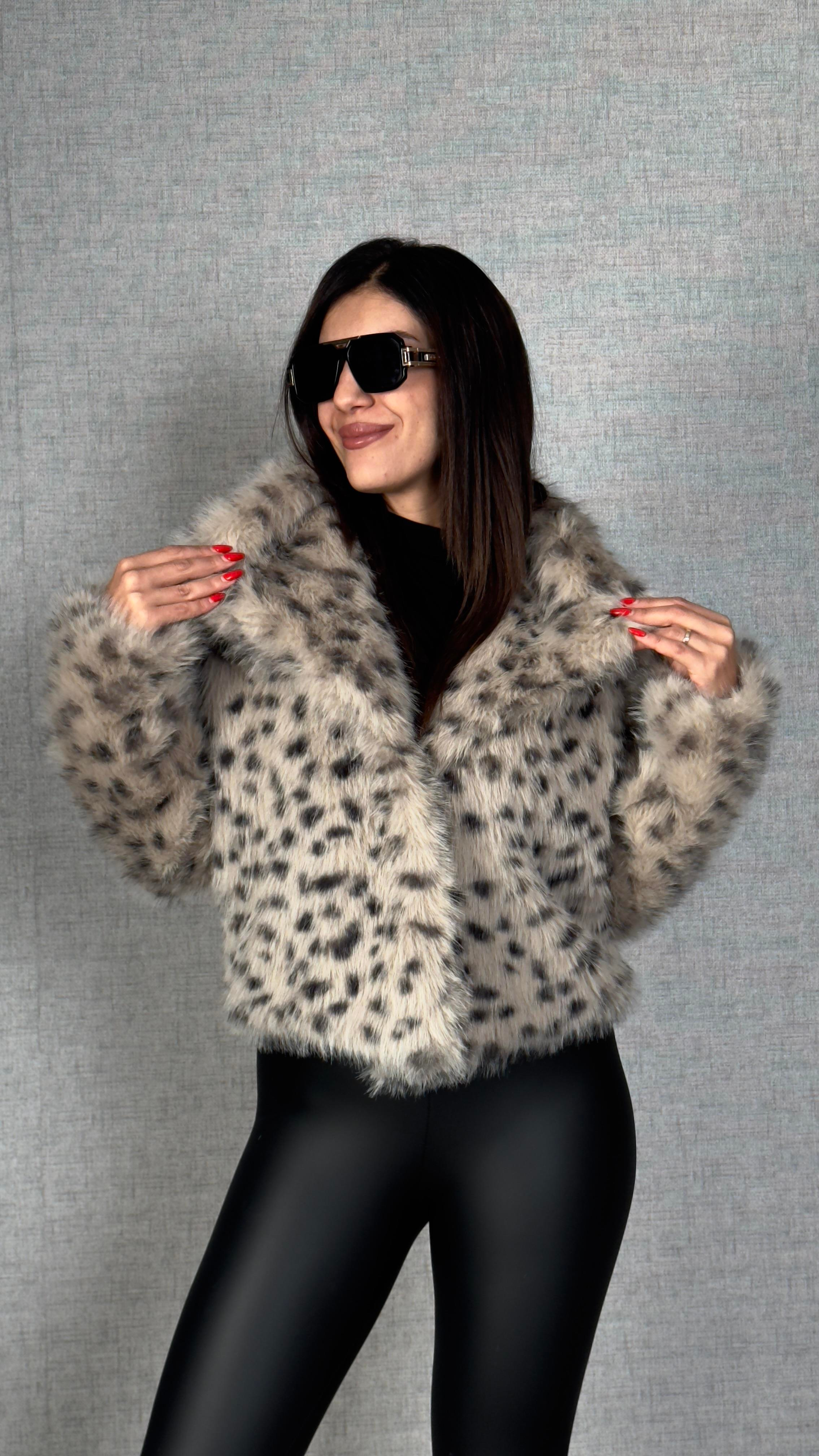 Nave Kahverengi Leopar Desenli Premium Kürk