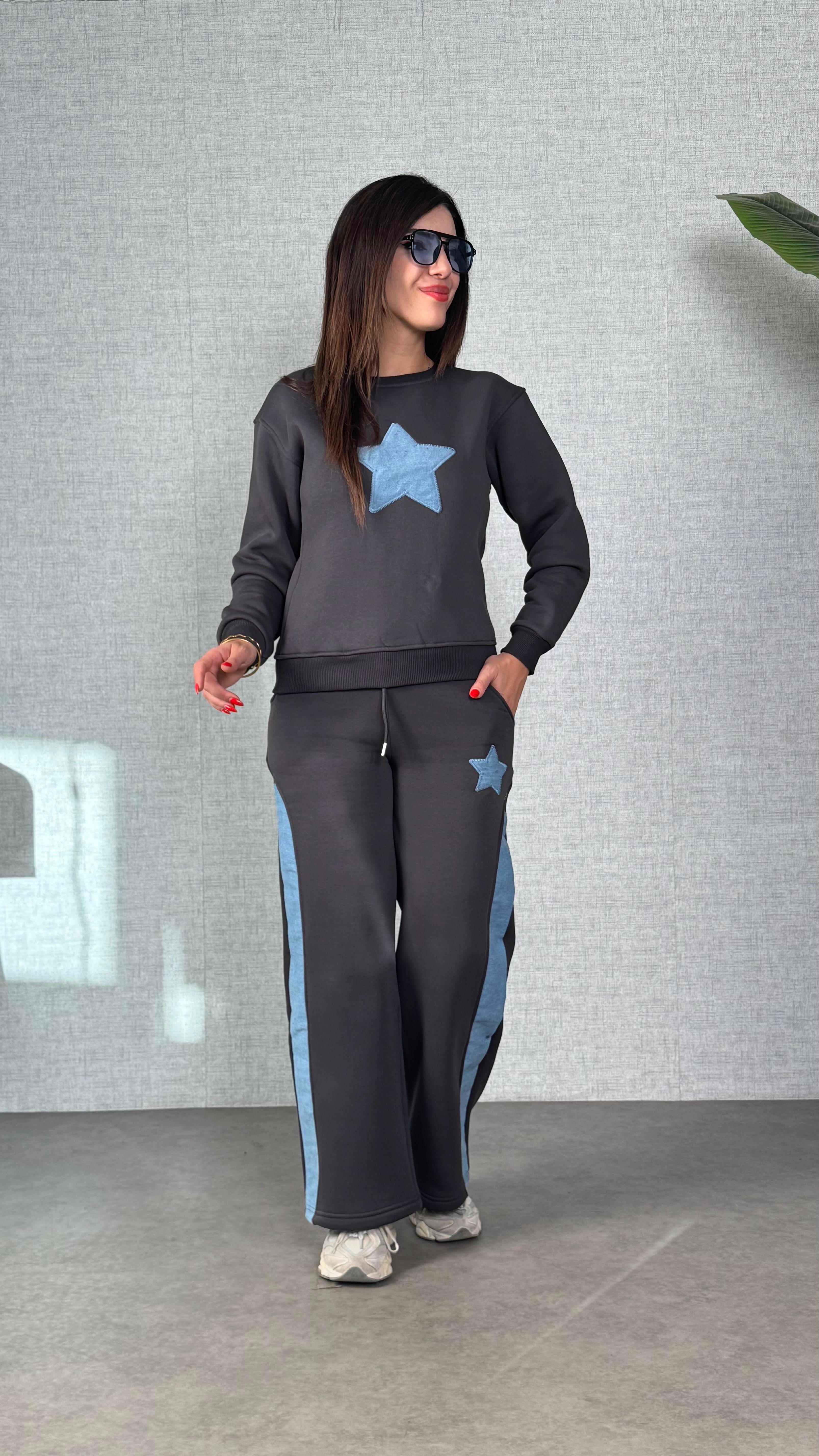 Rella Füme Jean Detaylı Üç İplik İkili Takım