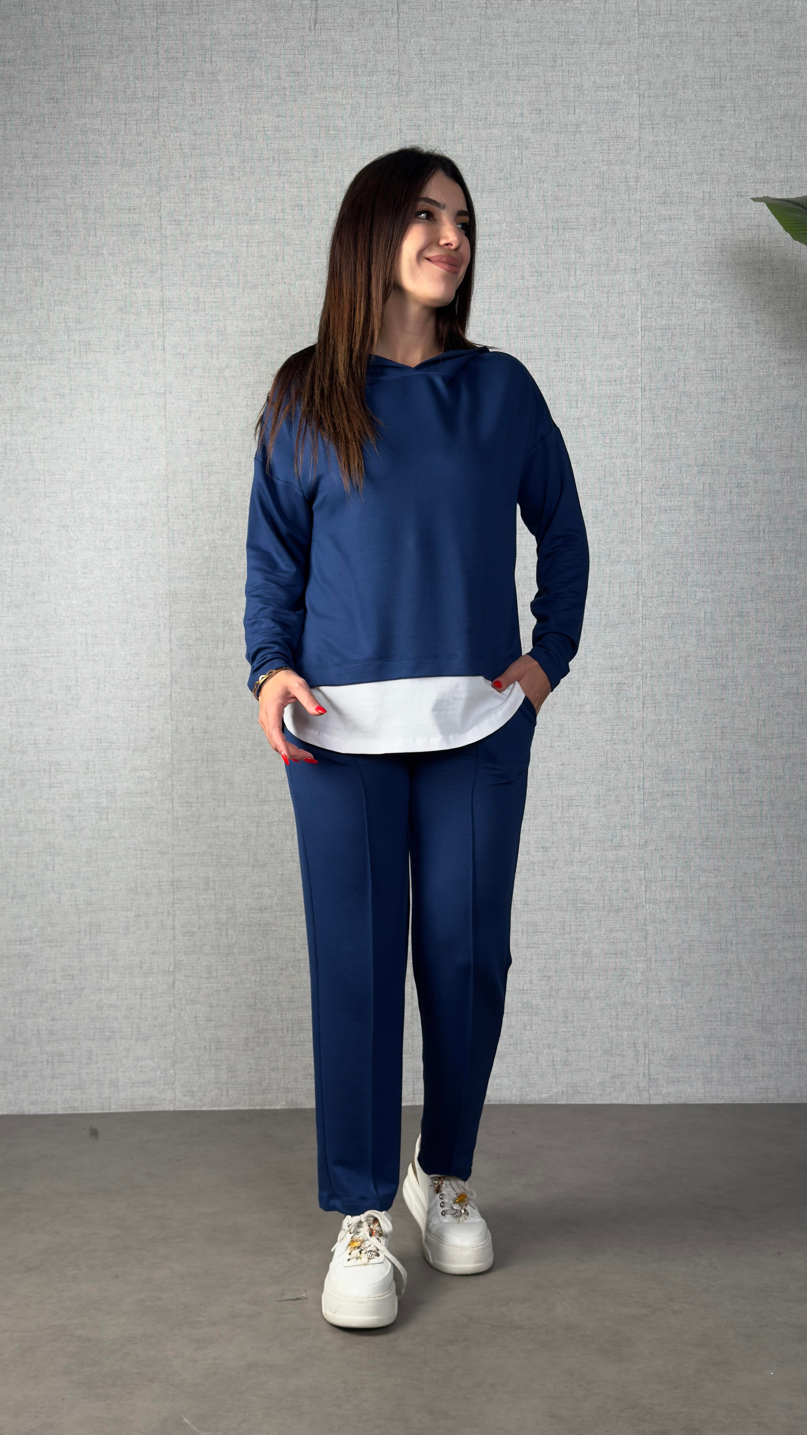 Rofi Mavi Süprem Garnili Kapüşonlu İkili Takım