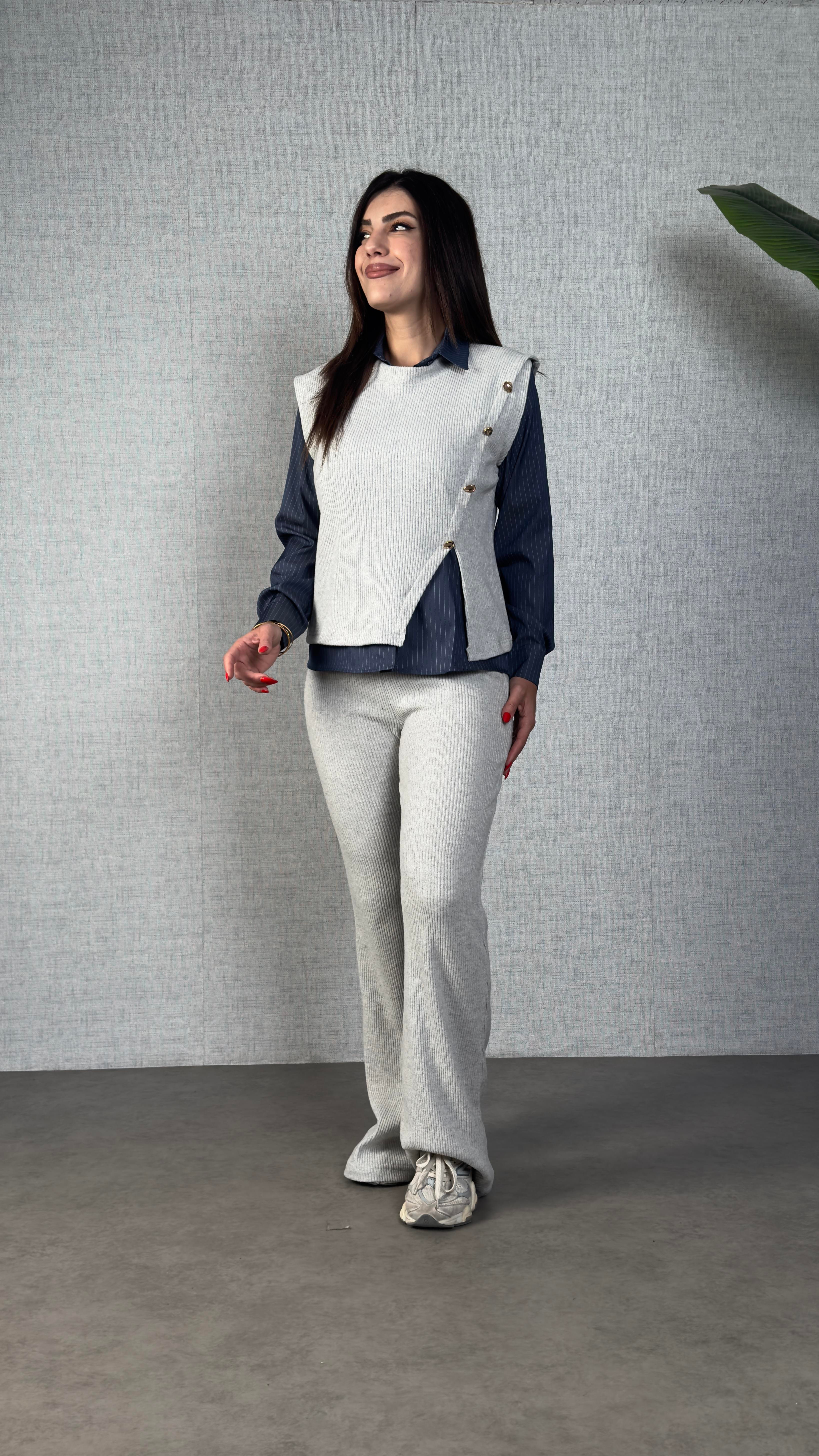 Siena Vizon Gömlekli Üçlü Triko Takım Siena Siyah Gömlekli Üçlü Triko Takım Siena Gri Gömlekli Üçlü Triko Takım