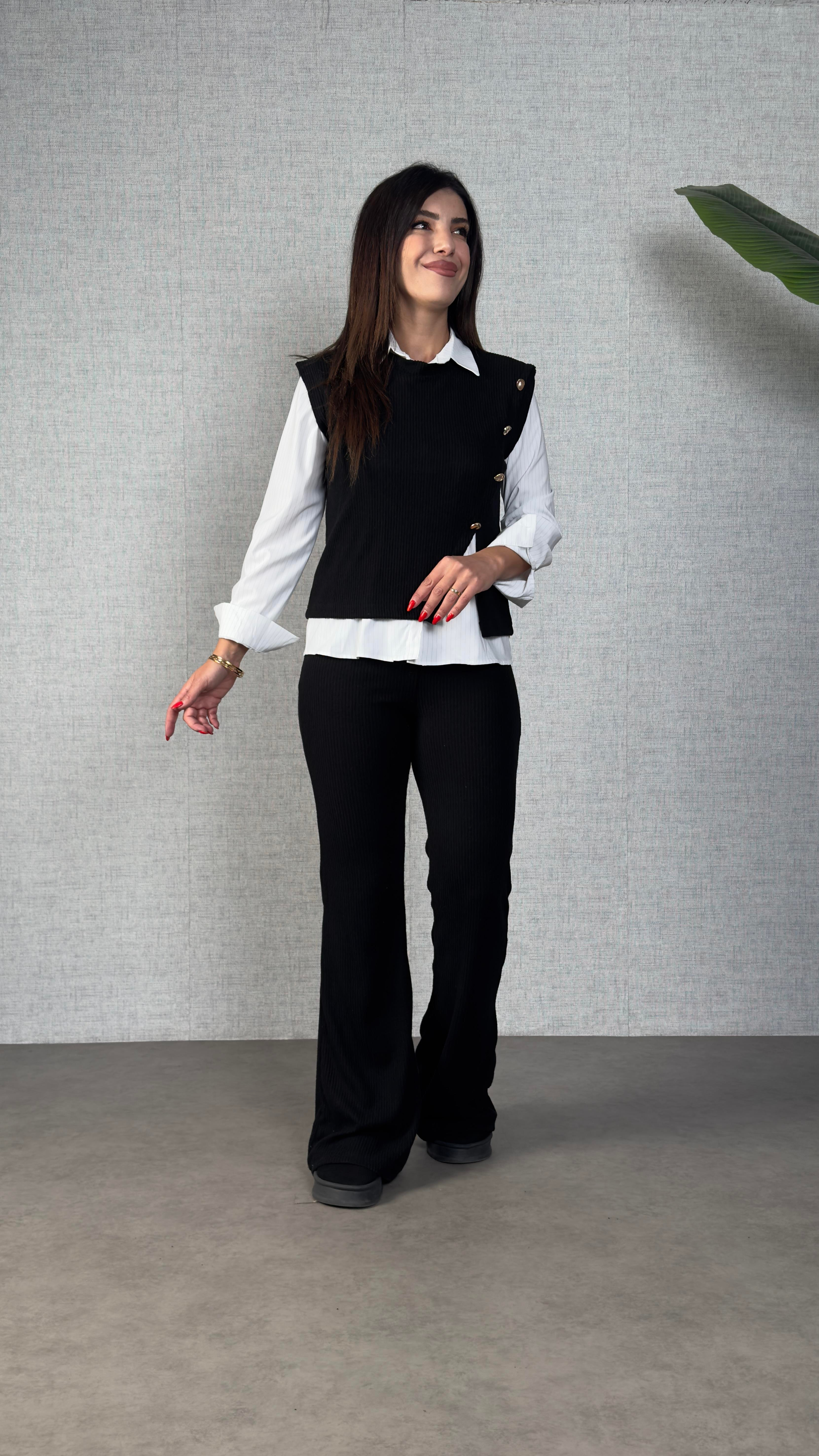 Siena Siyah Gömlekli Üçlü Triko Takım