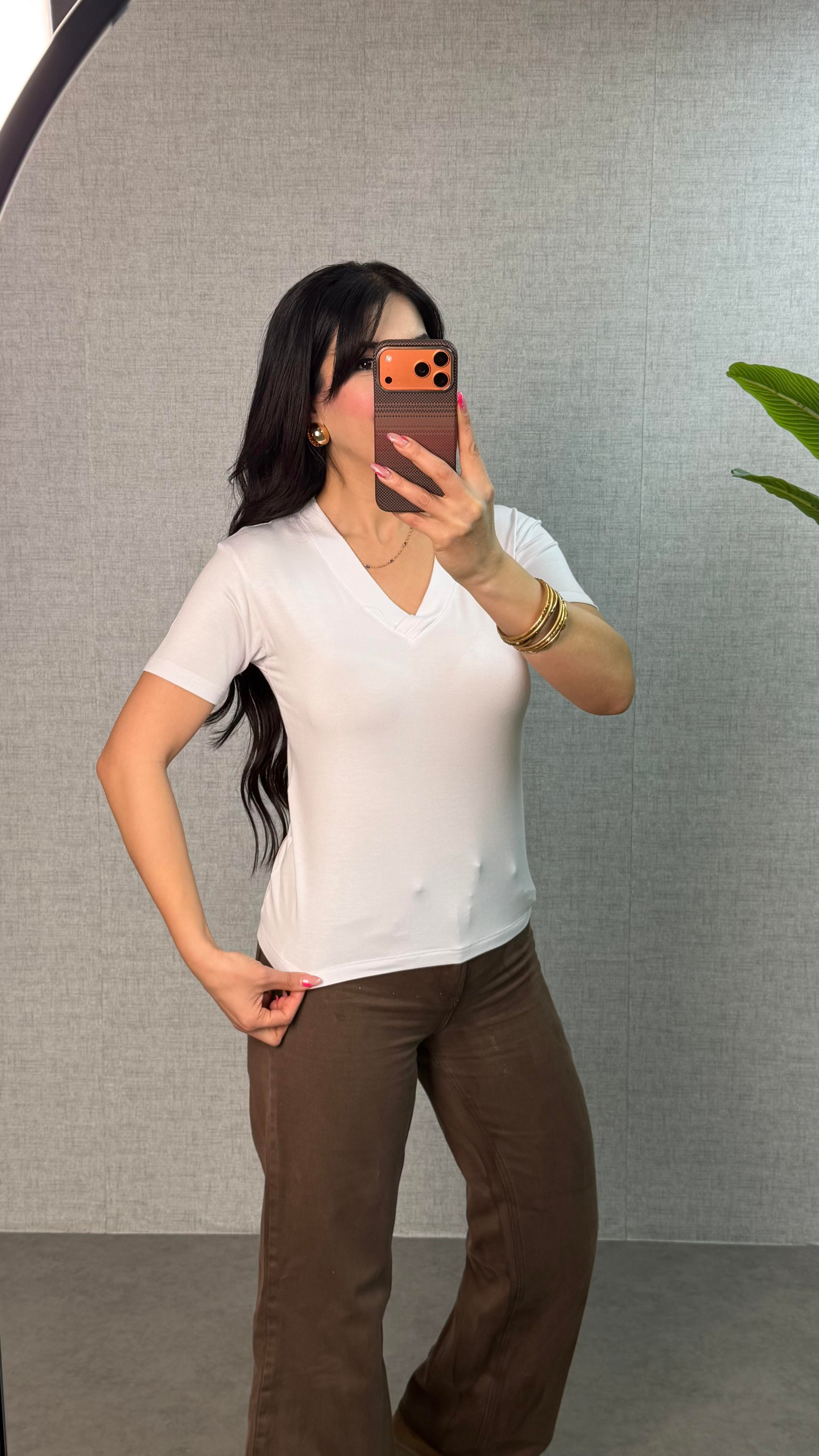 Somis Beyaz V Yaka Basic Bluz