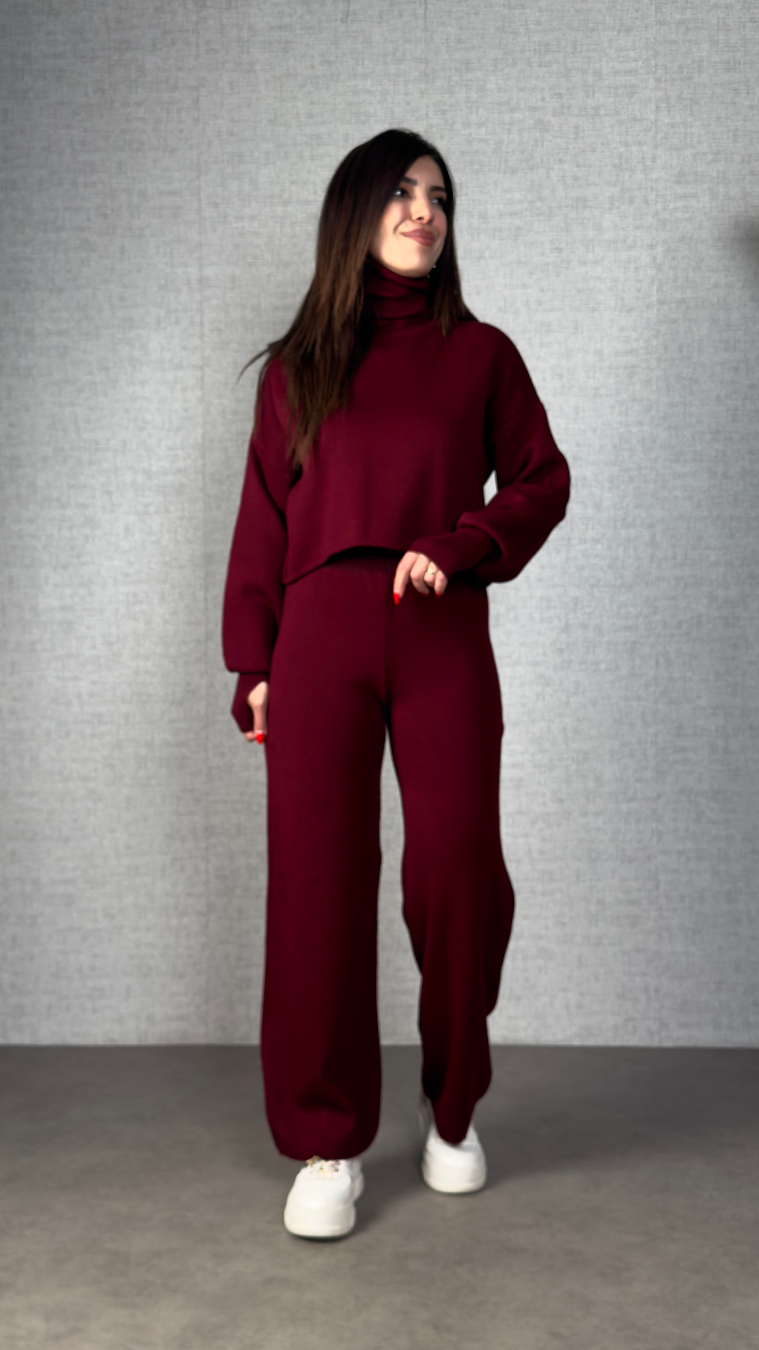 Yulia Bordo Balıkçı Yaka Parmak Geçmeli Triko Takım